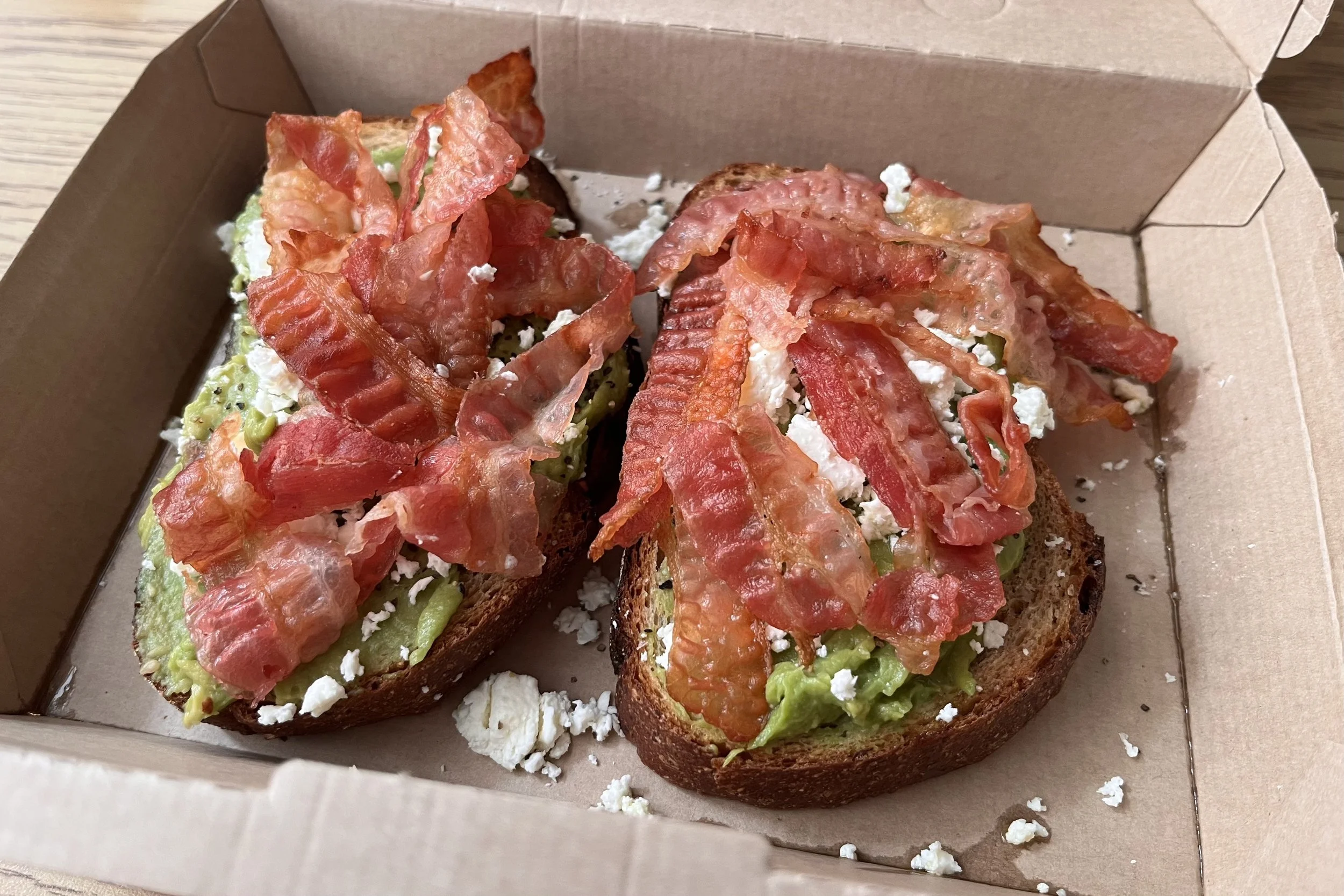 Honestly, this felt like an avocado toast you could get at a dunkin’ donuts. Pretty generic ‘avocado spread’ that didn’t really scream freshness, microwave bacon that smells smokey but only tastes like salt, and some pretty mid feta crumbles. Each component tasted the way I wanted it to, but all together it was so muddle and one note. My wallet is crying for a meal that was not worth the $10. We’ve got to find some alternative breakfast options for days like these.