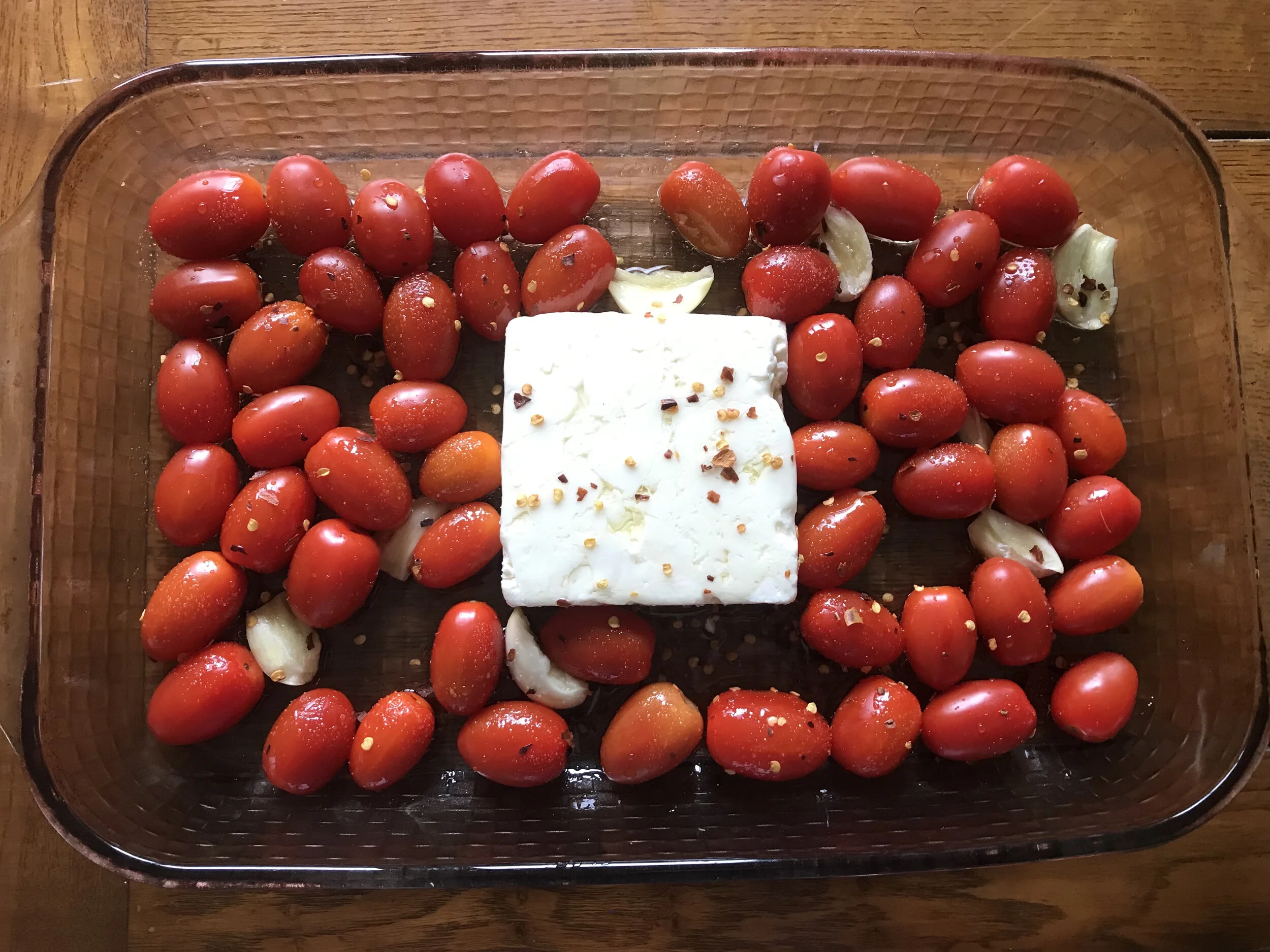 For those who don’t know, there’s a viral trend/hack where you bake a block of feta and 2 pints of grape tomatoes with some garlic and other seasoning then add cooked pasta and mix. Bam. Meal made. This is so appealing because of the ease of the recipe. Throw it in the oven, boil some pasta, and your meal is made, only it looks fancier, like you knew what you were doing all along.