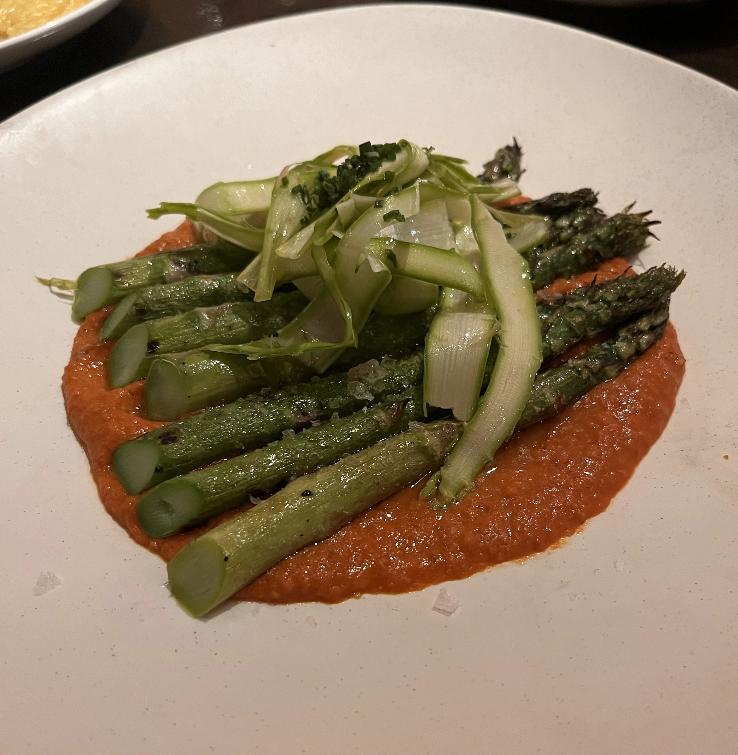Trigueros con romesco (Grilled asparagus with romesco sauce and sherry dressing) We figured this would be a good veggie choice that everyone would like and we weren’t wrong.